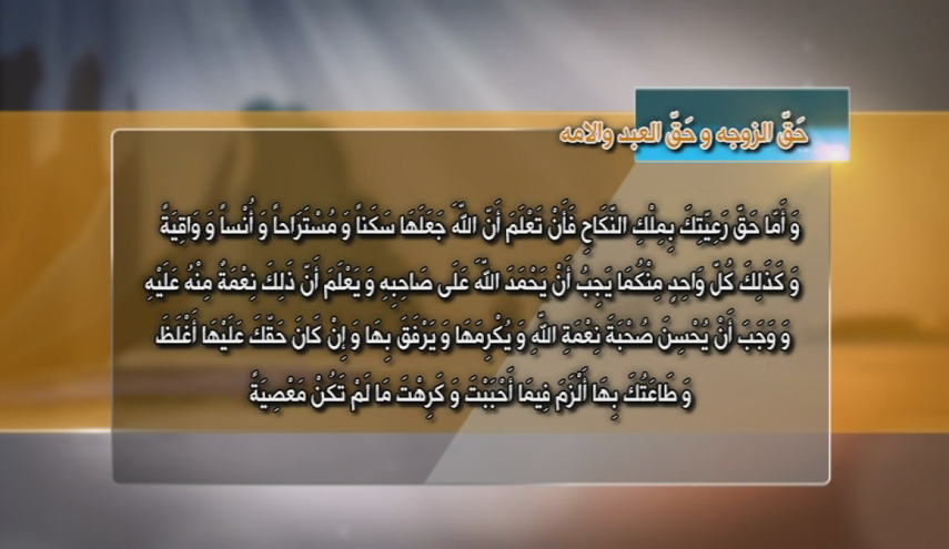 بيان "حق الزوجة وحق العبد والأمة " من رسالة الحقوق للإمام علي بن الحسين زين العابدين عليه السلام.