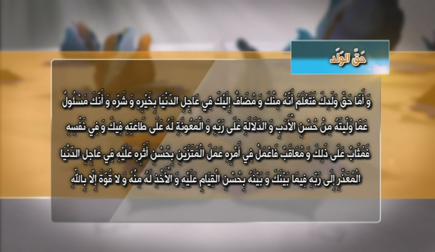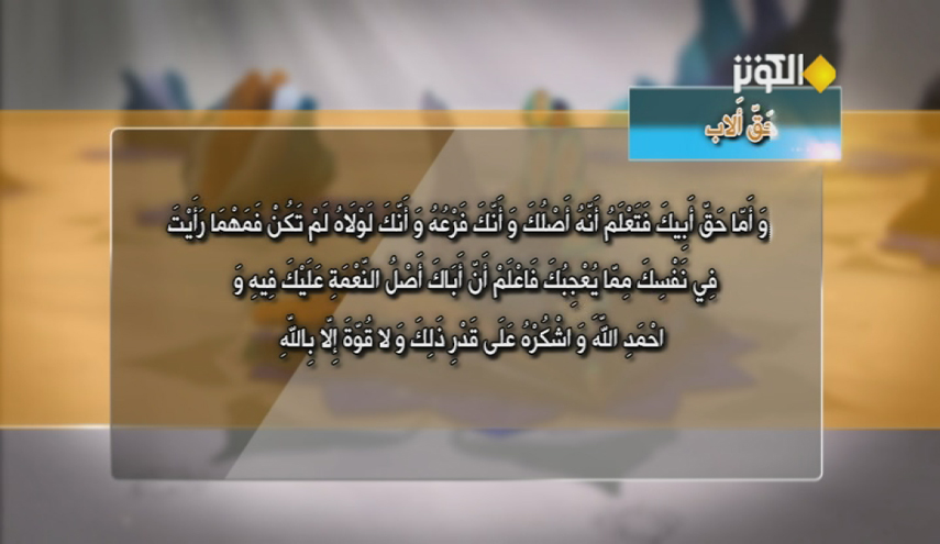 بيان "حق الأب " من رسالة الحقوق للإمام علي بن الحسين زين العابدين عليه السلام.