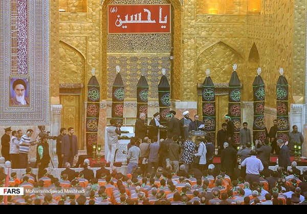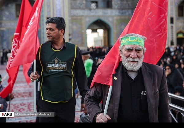 أقيمت أمس الاثنين في المرقد الرضوي الطاهر بمدينة مشهد شمال شرق ايران، مراسم توديع قوافل خدام مرقد الامام الرضا عليه السلام والزوار المتوجهين لزيارة اربعينية الامام الشهيد الحسين بن علي (عليهما السلام) في كربلاء المقدسة بالعراق.