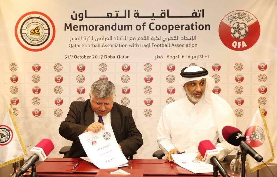 اتحاد الكرة العراق يوقع اتفاقية تعاون مع قطر