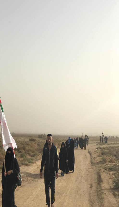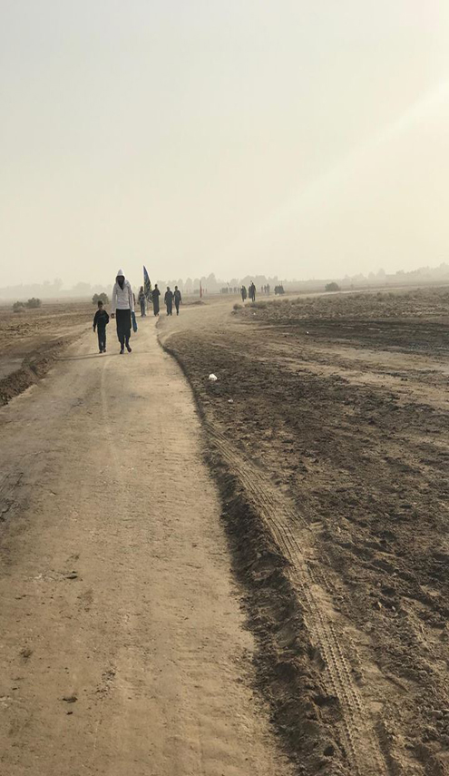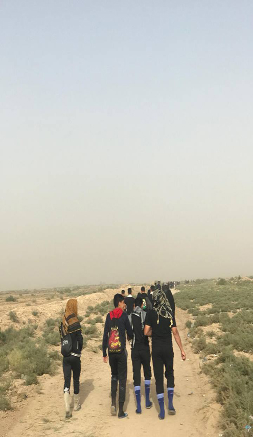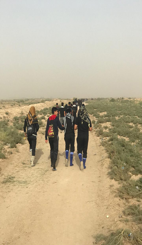 زوار الامام الحسين من قضاء الحي عبر الطريق الترابي الجزيرة