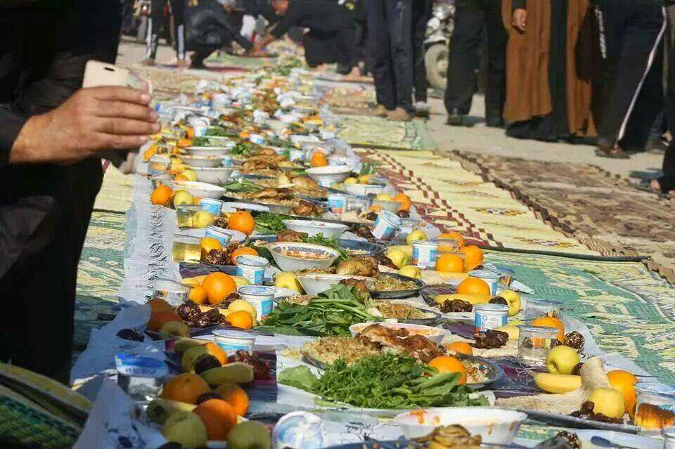 امتدت موائد الطعام التي اعتاد أهالي محافظة ذي قار على تقديمها للزائرين بسفرة متواصلة افترشت الطريق بطول (75) كيلومتراً وتنوعت بما أنعم الله عليهم من خير الزاد وأطيبه حيث يتنافسون بها على السخاء بكل امكانياتهم, ولم يسبق للتأريخ وموسوعاته المتخصصة أن سجل رقماً بالكرم والعطاء يصل الى نصف ما تقدمه هذه المواكب لأن موضوع استشهاد سبط النبي في واقعة كربلاء وما أفاضت به من عبر هي أكبر من مفهوم الإدراك البشري وأعظم من أن يقال عنها ملحمة، لذا ستبقى موائدك سيدي وافرة العطاء ما أشرقت شمس في الكون وهبَّ نسيم، فهنيئاً لمن خدم الحسين (عليه السلام) وهنيئاً لمن سار بدربه وهنيئاً لمن زار مرقده.