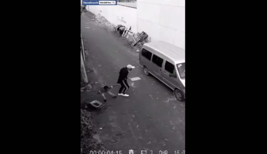 وأظهر مقطع الفيديو الذي وثقته كاميرا المراقبة المثبتة في الشارع، طفل يلعب وفجأة توقف سيارة ونزل منها شاب وراح يتحدث معه ثم جره من يده محاولا اختطافه، لتأتي فتاة وتلقنه ضربات مبرحة أسقطته أرضا.