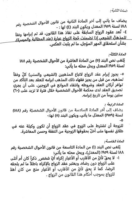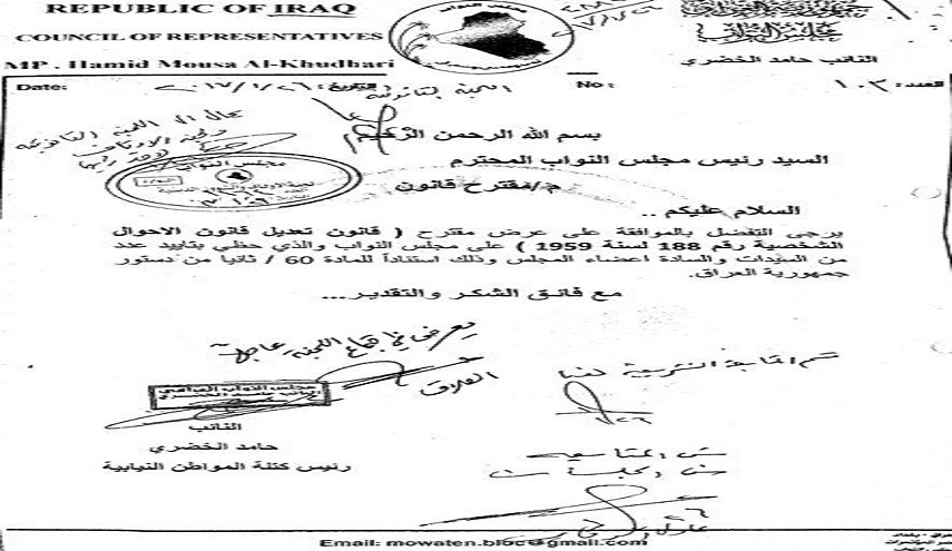 نص مقترح تعديل قانون الاحوال الشخصية العراقي