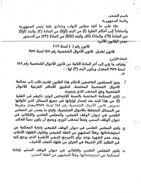 وادناه نص مقترح تعديل قانون الاحوال الشخصية:
