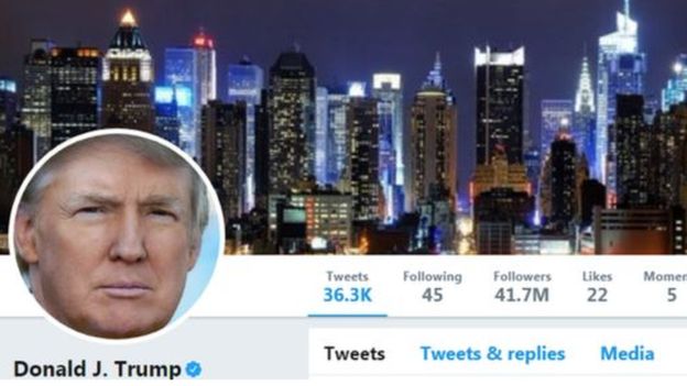 ويعد الرئيس الأمريكي من عشاق موقع "تويتر"، خاصة أنه صرح مؤخرا بأنه لولا الموقع لما وصل إلى البيت الأبيض! ويتابع ترامب أكثر من 41.7 مليون شخص، وهو دؤوب على التغريد بشكل يومي، حيث يعتبر أنه بإمكانه تجاوز ما يراها تغطية إعلامية غير عادلة من خلال التحدث بشكل مباشر.