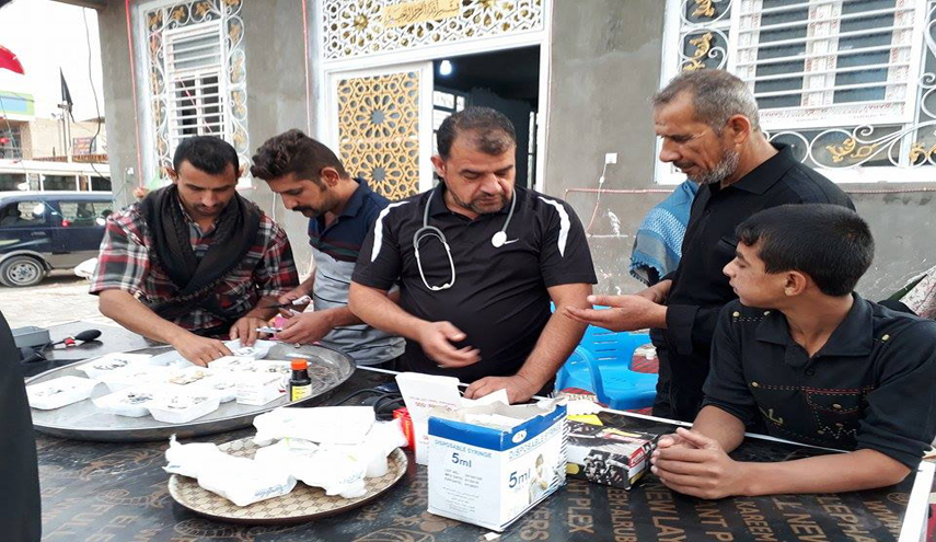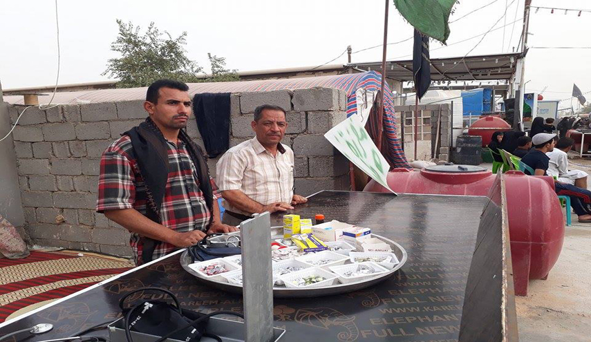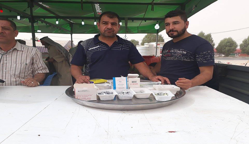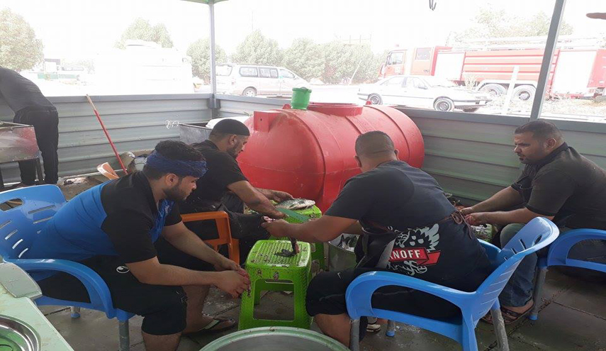 موكب أحباب الله يقدم خدماته لزوار أبا عبدلله الحسين طريق النجف _كربلاء