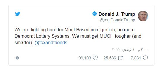 أعلن الرئيس الأمريكي دونالد ترامب'>الرئيس الأمريكي دونالد ترامب أن من يستخدم يانصيب البطاقة الخضراء (غرين كارد) للوصول إلى الولايات المتحدة، ليسوا "أفضل الأشخاص".