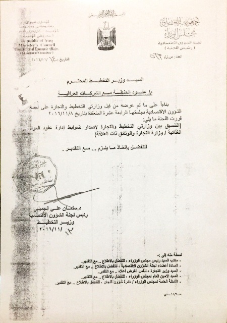 وأضافت، أن "وزير التخطيط سلمان الجميلي يخاطب نفسه كوزير التجارة وكالة وايضا يخاطب نفسه كرئيس لجنة الشؤون الاقتصادية، ليتفاوض ويتعاقد مع شركات تابعة له ولإبن أخيه، فضلاً عن استثناء شركاته من القانون"، لافتة الى أن "هذه السابقة تحدث لأول مرة في الدولة العراقية، إذ يكون الحكم والخصم هو الشخص ذاته في عدة وزارات".