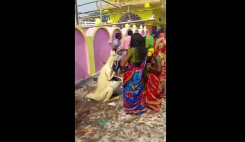 الطريف في الأمر أن التمثال وضع ليعمل جيب الكنغر كسلة مهملات وهو ما لم يلاحظه رواد المعبد معتقدين أنه تمثال مقدس لتشابهه مع أحد المقدسات الهندوسية.