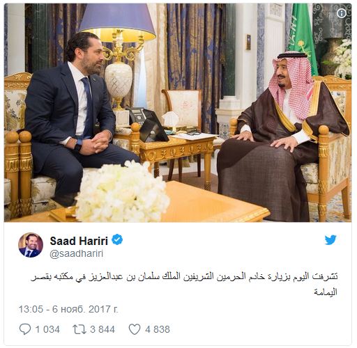 جدير بالذكر أن رئيس الوزراء اللبناني سعد الحريري أعلن استقالته في كلمة متلفزة من الرياض،وقال إنه يخشى على حياته من الاغتيال بعد أن "لمس أشياء تحاك ضده".