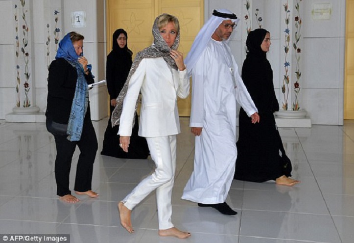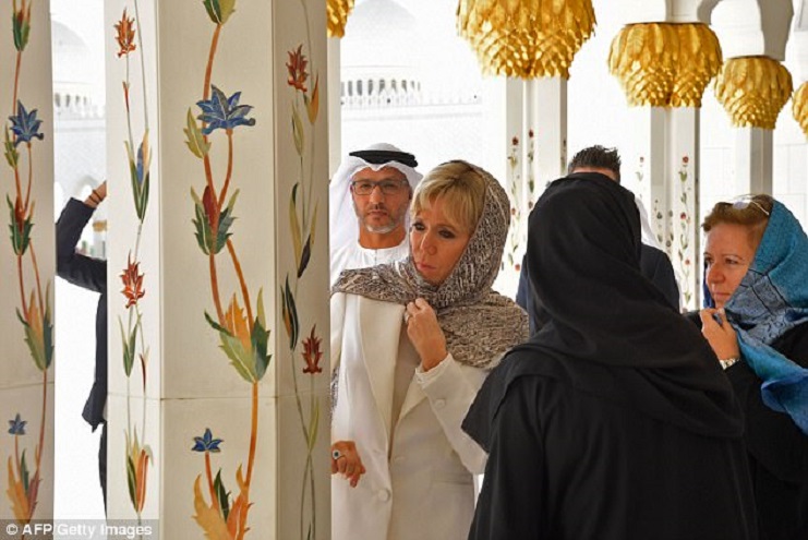 وبحسب صحيفة "ديلي ميل" البريطانية فهى الزيارة الأولى لـ"ماكرون" منذ فوزه برئاسة فرنسا فى مايو الماضي، بينما ارتدت "بريجيت" 64 عامًا بدلة أنيقة من اللون الأبيض، وسارت "حافية" القدمين فی المسجد.