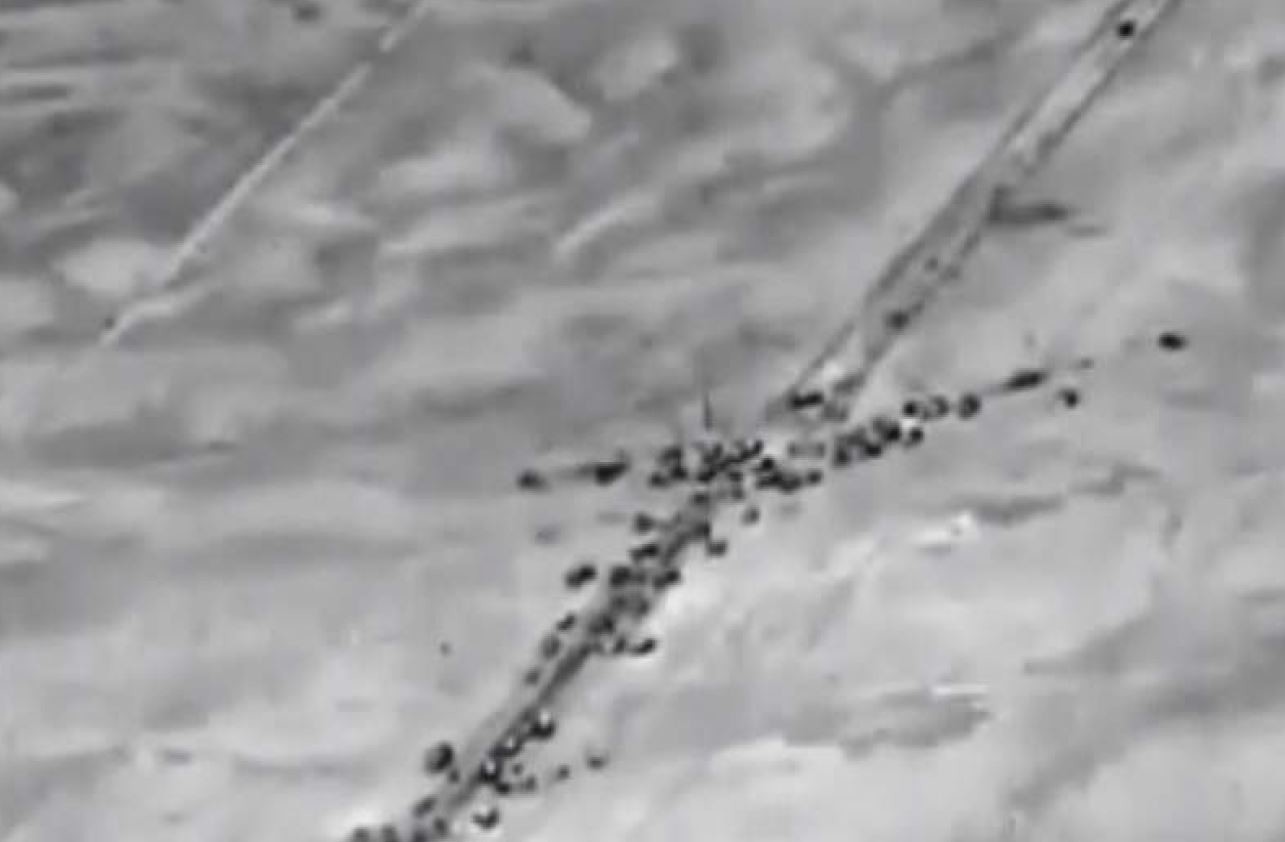 وبدت فيها قافلة للإرهابيين تتحرك في اتجاه الحدود السورية العراقية.. ويؤكد العسكريون الروس على أن التحالف الأمريكي رفض قصف مواقع داعش وبرر ذلك بأن الإرهابيين الذين يسلمون أنفسهم طوعا يقعون تحت حماية اتفاقية جنيف.