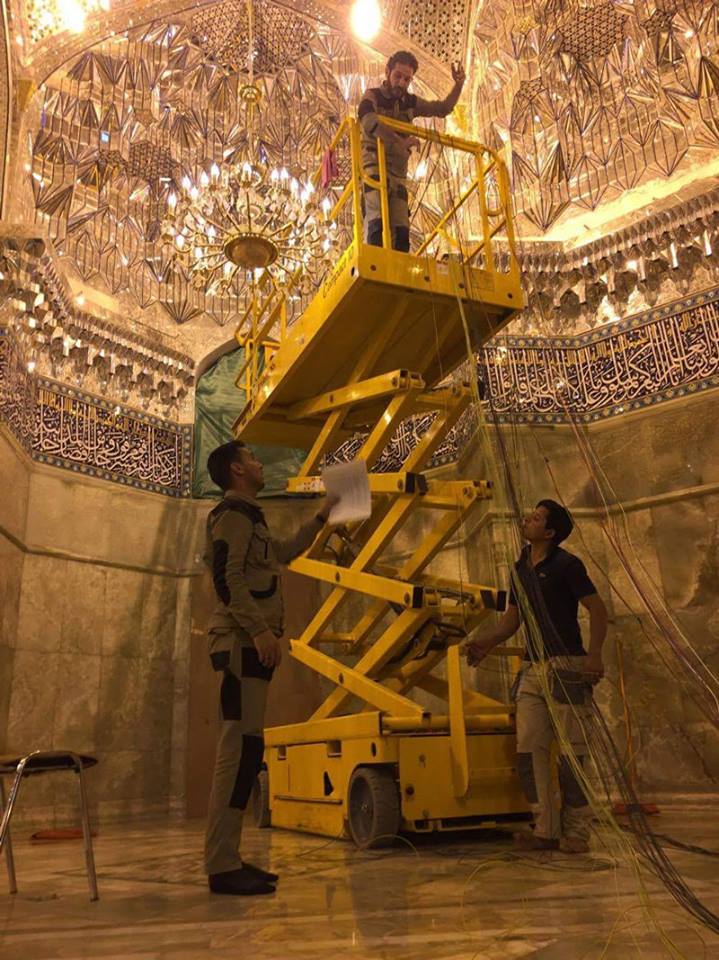 ونقل البيان عن المهندس الفني في العتبة قوله "بعد العمل الاجرامي الذي تطاول على اهل بيت النبوة والمتمثل بتفجير القبة الشريفة للإمامين الهمامين العسكريين عليهما السلام وما تبعة من دمار للمرقد الطاهر بادرت الاقسام الهندسية إلى وضع بصمة تتشرف بها عند النبي وآله {صلوات الله عليهم اجمعين} ومن ضمن هذه الاقسام قسم الكهرباء والتبريد وكان لشعبة الكهرباء بصمة في انارة الكهرباء للقبة الشريفة والحرم الطاهر والشباك المقدس وقد تداخلت الاعمال بين الاقسام الهندسية لوضع اساسيات العمل".