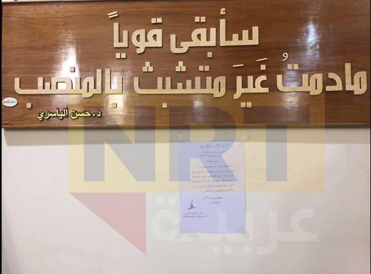وقال موظفون في هيئة النزاهة، إن الياسري، كان يعلق كتاب استقالته في مكتبه، تحت عبارة "سأبقى قويا ما دمت غير متشبث بالمنصب"، في إشارة الى استعداده لتقديم استقالته في أي وقت.