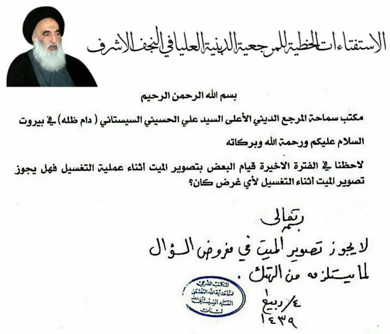 لايجوز تصوير الميت أثناء عملية التغسيل لما يستلزمه من الهتك.