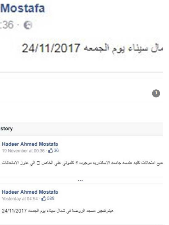 التاريخ الذي يظهر بجانب المنشور هو 19 نوفمبر 2017، أي قبل الحادث بنحو 5 أيام كاملة، وهو ما أدى إلى تداول المنشور بشكل كبير على موقع التواصل الاجتماعي.