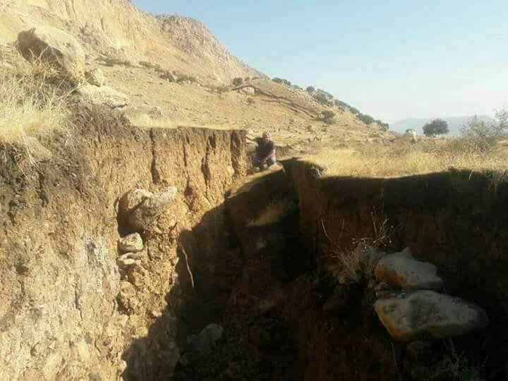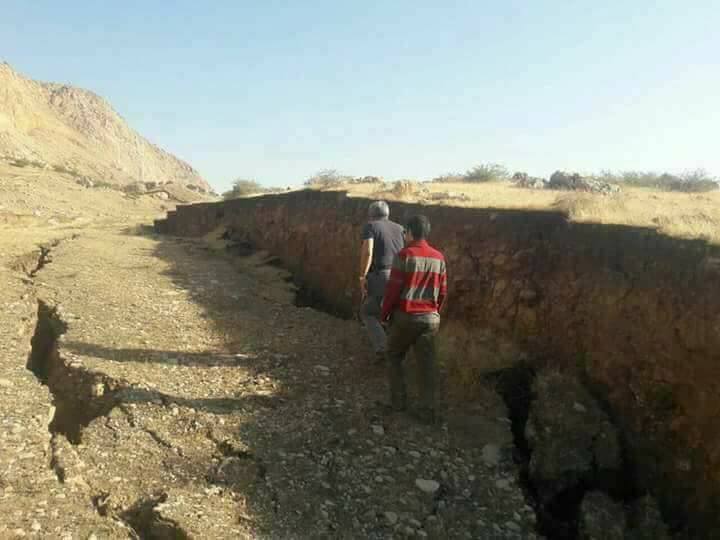 وبحسب الصور التي تداولتها مواقع التواصل الاجتماعي، الإثنين (27 تشرين الثاني 2017)، فقد حدثت تشققات واخاديد طويلة وانهيارات ارضية وتحركت طبقات الارض في منطقة مركز الهزة الارضية التي ضربت مؤخرا، مناطق واسعة من ايران والعراق وبلغت قوتها 7.3 درجة على مقياس ريختر وبعمق 15 كيلومترا.