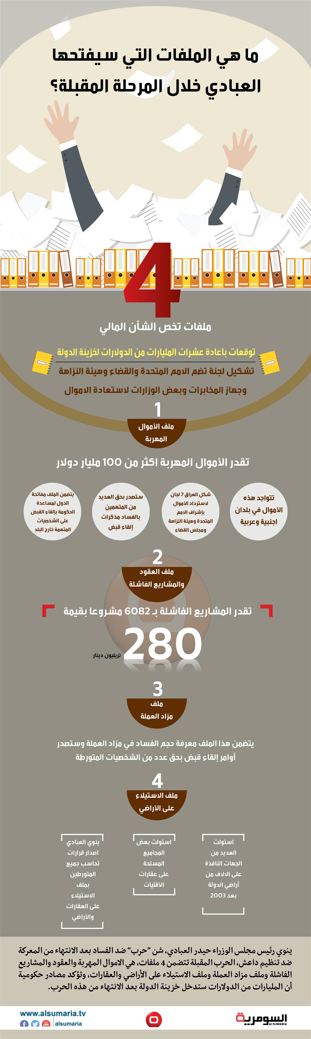 بالانفوغراف.. ملفات الفساد التي سيفتحها العبادي