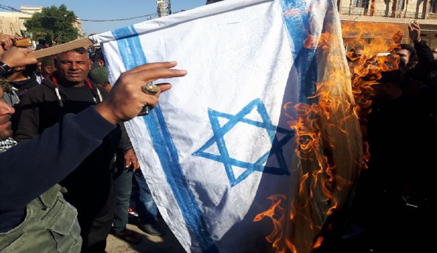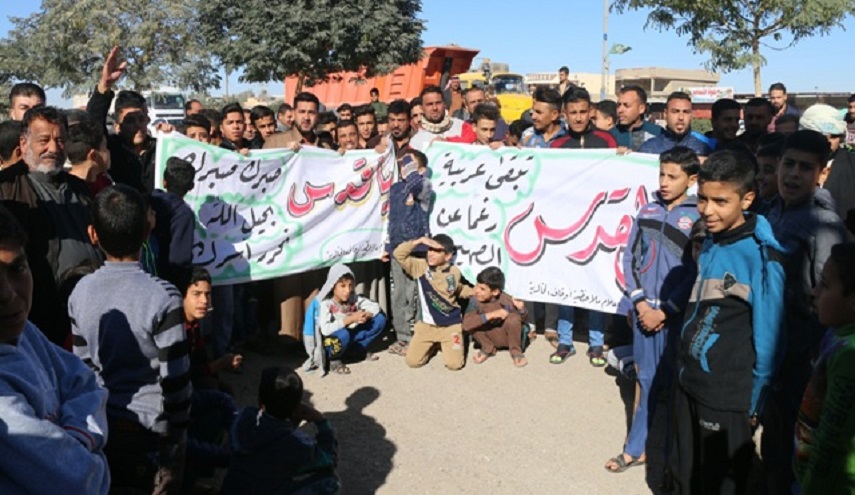 ورفع المتظاهرون لافتات تندد بالقرار الاميريكي الذي تبناه رئيس الولايات المتحدة دونالد ترامب، واعتبروه تدخلا سافرا في شؤونهم، كما انه وهب ما لا يملك، وهتفوا بصوت عال بالضد من التوجهات التي تتبناها الادارة الاميركية تجاه فلسطين، كما قام متظاهرون بحرق العلم الاسرائيلي، مؤكدين أن فلسطين عربية وسبقى عربية والقدس عاصمتها ولا مكان للاسرائيليين بها.