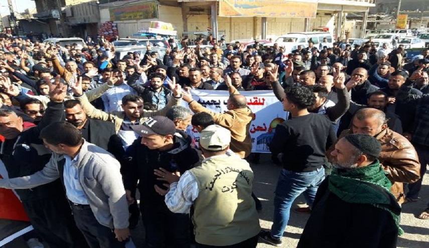 وخرج مئات الآلاف من المواطنين العراقيين بعد صلاة الجمعة، اليوم في تظاهرات كبيرة كل في محافظته تنديدا بقرار الرئيس الاميركي دونالد ترامب القاضي سفارة الولايات المتحدة في اسرائيل من تل ابيب الى القدس.