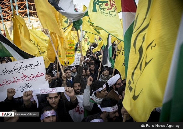 طهران ـ الكوثر: تحت شعار "حماة القدس الشريف" نظم الشباب المدافعون عن القدس الشريف والطلبة الجامعيين اعتصاما امس الاثنين في طهران احتجاجا على قرار الرئيس الاميركي دونالد ترامب الاعتراف بالقدس عاصمة للكيان الصهيوني.