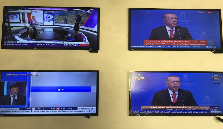 أما محطات التلفزة السعودية والاماراتية فكانت أسوأ حالا من الصحف حيث تجاهلت القمة الإسلامية بشكل أوضح، وانشغلت قناة "العربية" بتغطية أخبار البورصة وأسواق المال والاقتصاد بدلا من بث الجلسة الافتتاحية للقمة الإسلامية. أما قناة "سكاي نيوز عربية" المملوكة لحكومة أبوظبي فكانت مشغولة هي الأخرى ببرنامج اقتصادي يتضمن أخبار الأسهم والبورصة.