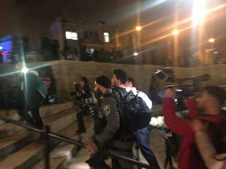 وذكر شهود عيان أن قوات من الخيالة وعناصر الوحدات الخاصة "الإسرائيلية"، ومن وحدة المستعربين هاجموا المعتصمين بقوة، واعتدوا على الجميع بما فيهم الطواقم الصحفية والنساء.