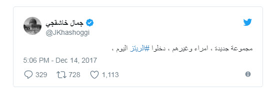 وقال خاشقجي في تدوينة له عبر حسابه بموقع التدوين المصغر تويتر : “مجموعة جديدة من الأمراء وغيرهم دخلوا اليوم إلى الريتز”.