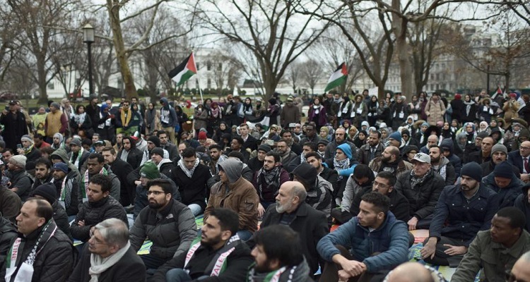 وذكرت مصادر أن المتظاهرون حملوا أعلام فلسطين، ورفعوا لافتات ورددوا هتافات تطالب بإلغاء قرار ترامب بشأن الاعتراف بالقدس عاصمة لإسرائيل، وطالبوا بإنهاء الاحتلال الإسرائيلي للأراضي الفلسطيني، بما فيها القدس. وخلال الاحتجاجات دعا المشاركون لإزالة المستوطنات ووقف التمويل والدعم الأمريكي للحكومة الإسرائيلية، وإلزامها بوقف الانتهاكات ضد الشعب الفلسطيني ومحاسبة المسؤولين عن هذه الانتهاكات. ويوم أمس السبت نظم العشرات وقفة أمام السفارة الأمريكية بالعاصمة النمساوية فيينا، احتجاجا على اعتراف واشنطن بمدينة القدس المحتلة عاصمة لإسرائيل. ورفع المحتجون لافتات مناهضة للقرار الأمريكي كتب عليها "فلسطين حرّة"، "لا لحصار القدس". وأكد المتظاهرون أن القرار الأمريكي يخالف القوانين الدولية، واصفين الولايات المتحدة بحارس "إسرائيل". وفي السادس من ديسمبر/كانون الأول الجاري اعترف ترامب رسميا بالقدس المحتلة عاصمة للكيان الإسرائيلي وأعلن البدء بنقل سفارة بلاده إلى المدينة المحتلة، الأمر الذي قوبل برفض وغضب عربي وإسلامي. المصدر: الوقت