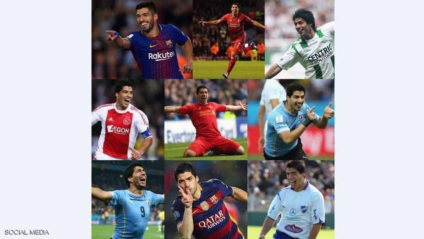ونشر سواريز، الشهير بعضاته للمدافعين، على موقع "تويتر"، صورة مجمعة له بقمصان الفرق التي لعب لها خلال مسيرته الكروية، إلى جانب منتخب أوروغواي.