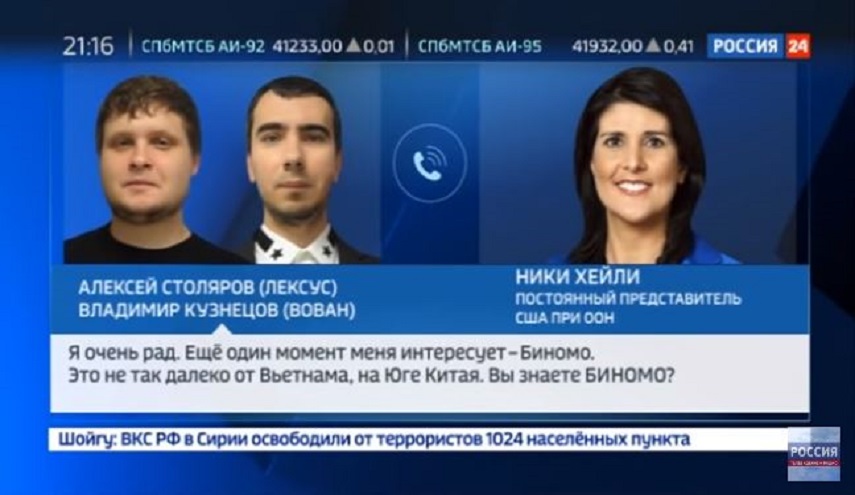وتشير قناة "روسيا 24" إلى أن هايلي لم تلاحظ أنها لا تتحدث مع رئيس الوزراء البولندي الحقيقي، حتى بعد ما سألها المخادع عن كيفن سباسي (ممثل أمريكي مشهور ومتهم بالتحرش الجنسي) وبترو بوروشينكو (الرئيس الأوكراني).