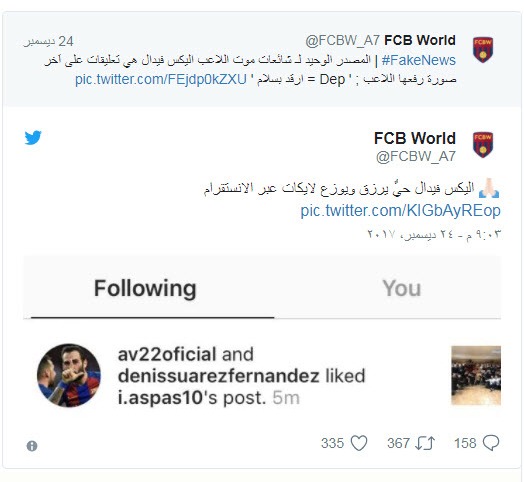 وتسبب تعليق من أحد متابعي فيدال عبر انستغرام على احد الصور والذي كتب "ارقد في سلام"، في إثارة الشائعة.