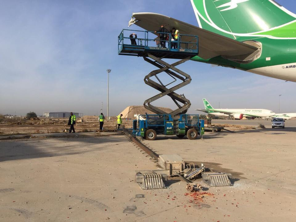 وذكرت مصادر من مطار بغداد، في تصريحات صحفية، ان طائرة "إيرباص 330" تابعة للخطوط الجوية العراقية، اصطدم أحد أجنحتها صباح امس، بعمود اتصالات بجانب المدرج في ساحة المطار، وأدى ذلك الى وقوع ضرر بليغ فيه مما استدعى خروجها عن الخدمة مؤقتاً واستنفار فرق الصيانة لتصليحها.