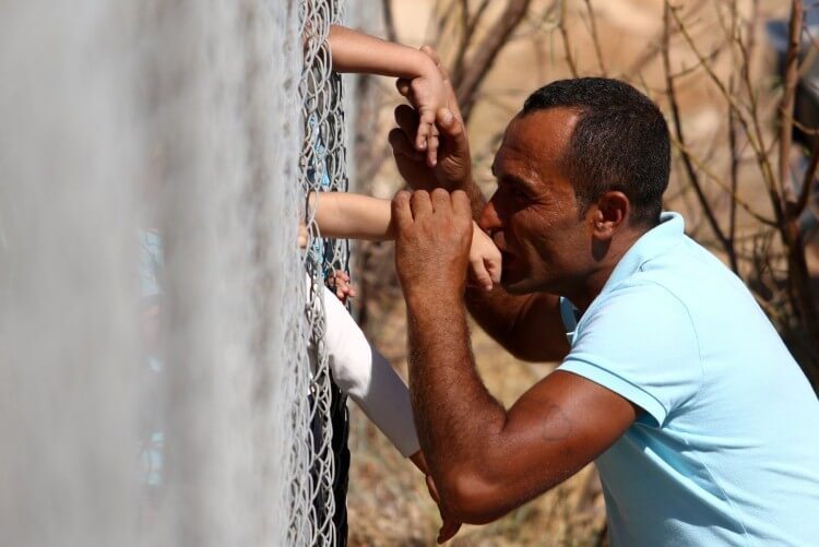 لاجئ سوري يعيش في قبرص يتلقي أطفاله الذين وصلوا إلى مخيم للاجئين خارج نيقوسيا.
