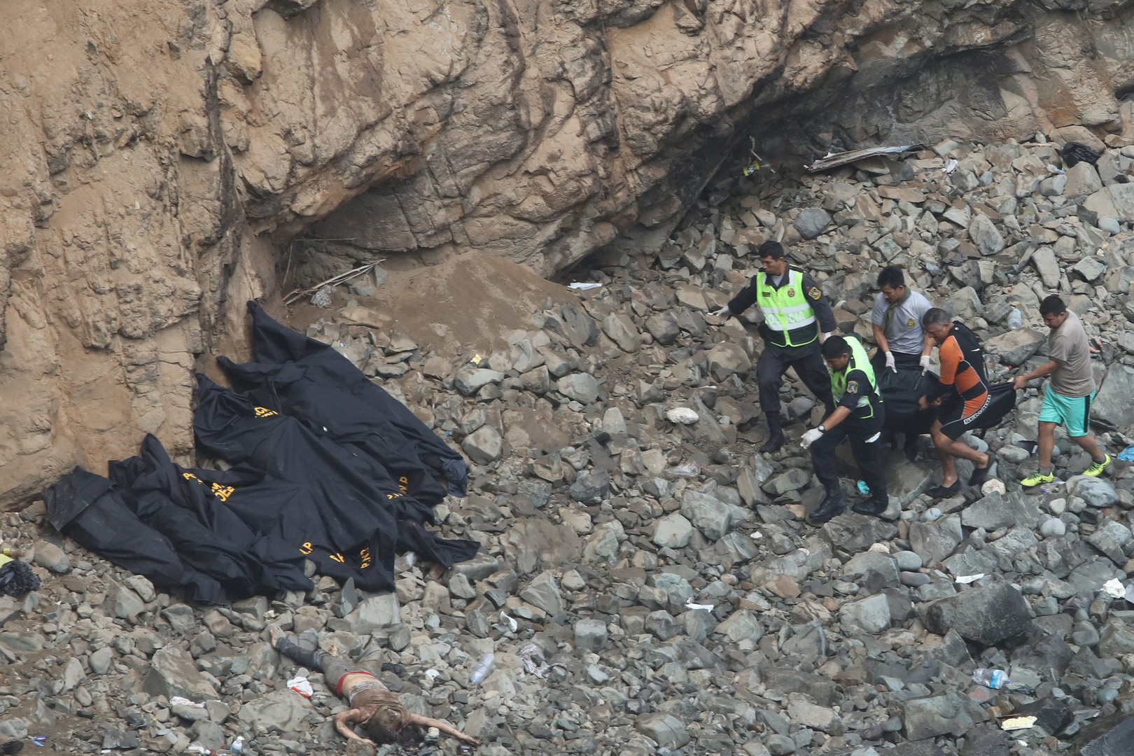 وقال قائد شرطة المرور الكولونيل دينو اسكوديرو إن الحادث وقع عند "منعطف الشيطان" بالقرب من باسامايو، على بعد حوالى 45 كلم شمال العاصمة ليما.