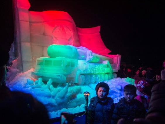 أقيم وسط العاصمة الكورية الشمالية بيونغ يانغ بحلول السنة الجديدة مهرجان للتماثيل الجليدية يختلف كثيرا عن مهرجانات مماثلة نظمت في دول أخرى بالمناسبة نفسها.