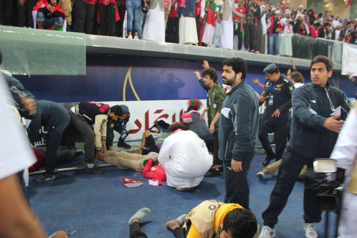 وهرعت سيارات الاسعاف الى داخل المعلب لإسعاف المصابين الذين قدرت وسائل اعلام كويتية عددهم بحوالي 27 مشجعاً، وقد وصفت أوضاعهم بالمستقرة.