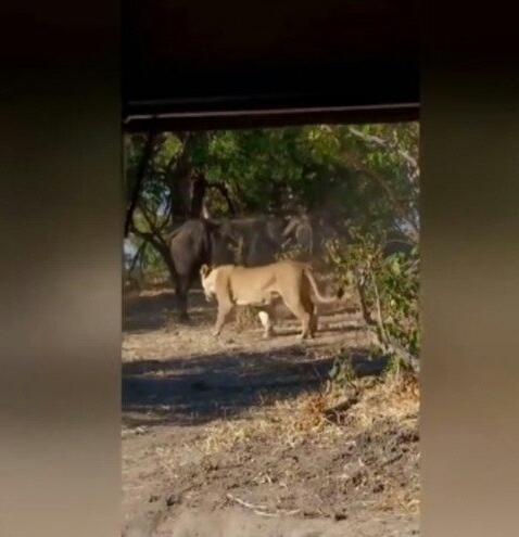 ويُظهر الفيديو الجاموس يكافح من أجل الدفاع عن نفسه بعد أن حاصره الأسد، وقفز لبؤتان على ظهره للسيطرة عليه، لكن الجاموس بدأ يجري حتى وصل إلى مياه ضحلة، ما أزعج الأسود وبدأوا يتخلون عنه واحدا تلو الآخر عندما سبح الجاموس في مياه عميقة.