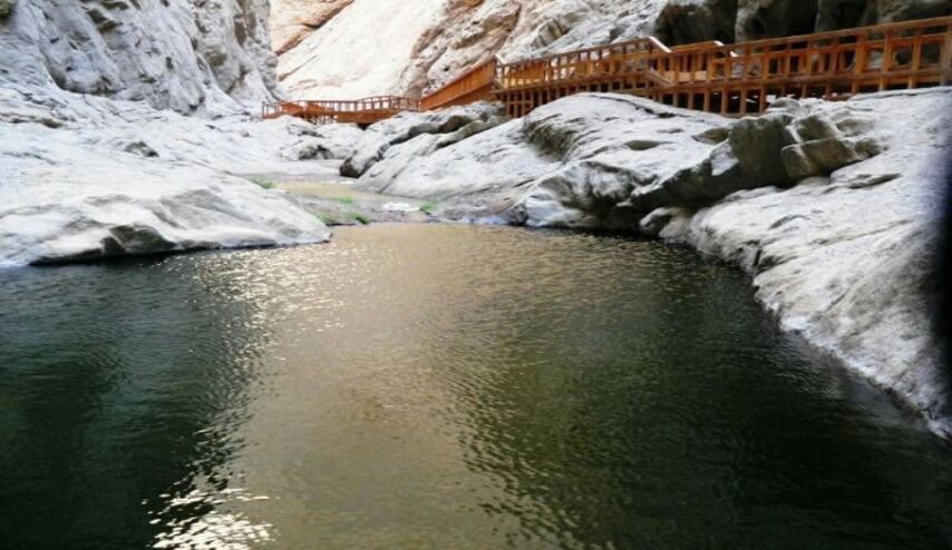 ولا تزال المياه تجري في هذا المكان حتى يومنا هذا في عيون موسى وطيب وغيرها من العيون، كما تنساب المياه وسط الجبال بشكل دائم، فتنبت الأشجار الحولية والمثمرة ومتعددة الحمضيات في هذه المنطقة الخصبة للزراعة. الهروب الأول لموسى (س) ومغائر شعيب ووفقاً للعديد من الباحثين، فهذا الموقع (مضرب عصا موسى (س)) هو الذي عبر منه النبي موسى (س) هرباً من فرعون، وأن النبي موسى عندما ضرب بعصاه انحسر الماء عن البحر، وظهر خليج العقبة، فسلك هذا الطريق في هروبه الأول ليعيش في البدع أو مغائر شعيب التي تبعد عن موقع الحجر (مضرب عصاه) 28 كيلومتراً. الشق الكبير وجسور خشبية ويذكر أن المنطقة كانت مفتوحة للدخول إليها عبر تصاريح يصدرها سلاح الحدود السعودي والمرور. وعند الوصول للموقع، تتوقف السيارات في مدخل الشق العظيم، ليتم السير مشياً على الأقدام وسط هذا الشق الطبيعي الكبير والممتد لمسافة كبيرة. وتبدأ فوهة الجبل بجانب البحر مباشرة، حيث توجد جسور خشبية ضمن مشروع للهيئة العامة للسياحة والتراث الوطني، غير أن المنطقة لا تزال تفتقد للكثير من الخدمات. الاسم القديم والنقوش الأثرية المهتم بالآثار محمد الساعد، الذي سبق له تسليم قطع أثرية من هذا الموقع لهيئة السياحة، أشار إلى أن مضرب عصا موسى هو الاسم القديم للمكان، وأنه تم تغييره منذ فترة إلى "طيب"، وتسجيل الاسم الجديد في اللوحات. ودعا إلى إعادة الاسم القديم استناداً للتاريخ مع البحث والتقصي في المنطقة. وبين الساعد أن مضرب عصا موسى ووجود العيون يرمز لعبور النبي موسى وقومه من هنا، مؤكداً وجود شواهد كثيرة على هذا العبور، منها جبل اللوز، ومغائر شعيب، ومضرب عصا موسى، وغيرها من المواقع والنقوش الأثرية على الجبال والحجر. مضرب العصا وأودية "نيوم" وإلى جانب وادي الديسة الكبير، والجبال العالية المطلة على خليج العقبة، والشواطئ البكر في المنطقة، يعد وادي مضرب عصا موسى أو طيب ضمن مشروع "نيوم" الذي أعلن عنه صندوق الاستثمارات العامة لاستغلال المنطقة الواسعة متعددة التضاريس، والتي تضم أودية شهيرة، ومناطق تاريخية، وجبالا بركانية وحرات طبيعية.
