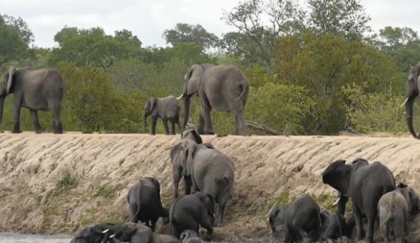 حسب ما نشرته صحيفة "ديلى ميل" البريطانية، سار قطيع من الفيلة على ضفة النهر في سد شيتوا، جنوب أفريقيا لكن أصغر أفراده فشل في تسلق الحافة الجانبية للنهر، مما أدى إلى سقوطه في المياه بشكل محرج.