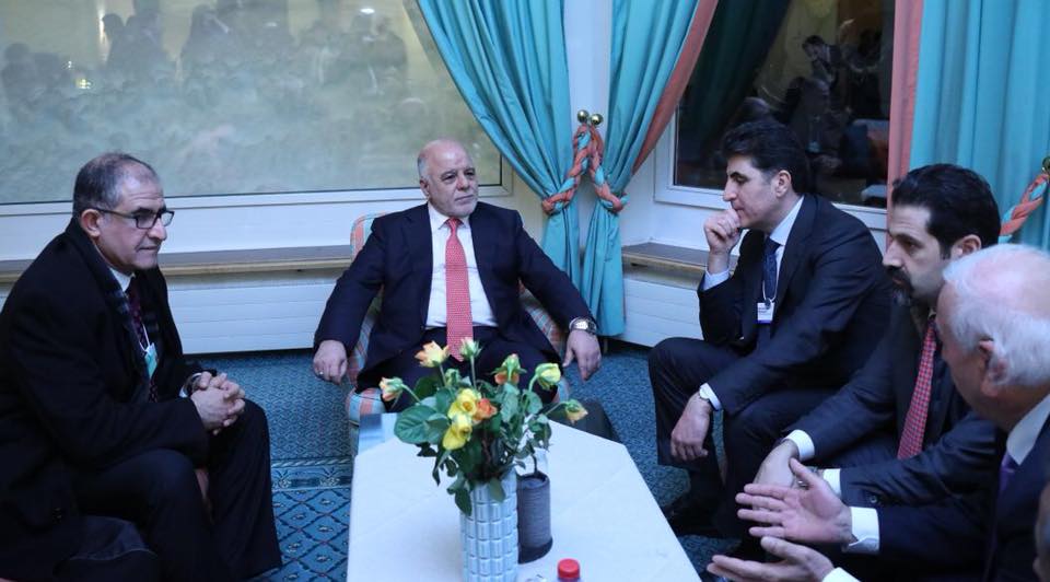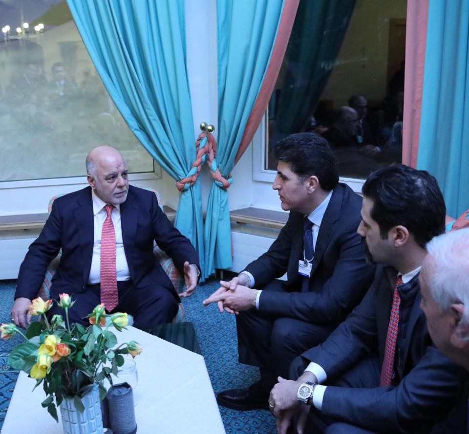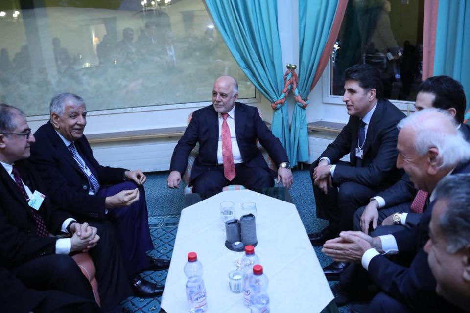 وقد التقى رئيس الوزراء العراقي عددا من المسؤولين والرؤساء العرب والاوربيين، مثل المستشارة الالمانية، انجيلا ميركل، والملك الاردني، عبد الله بن الحسين ، كما التقى مجموعة جديدة من رؤساء الشركات الداعمين لاعادة اعمار العراق .
