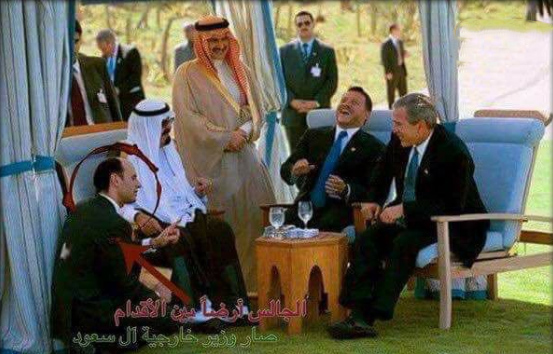 ووفقا للصورة المتداولة فقد ظهر “الجبير” وهو يجلس على الأرض بجوار قدمي الملك الراحل عبد الله بن عبد العزيز وبحضور كلا من الرئيس الامريكي الأسبق جورج بوش الإبن والملك الاردني  عبد الله والامير الوليد بن طلال.