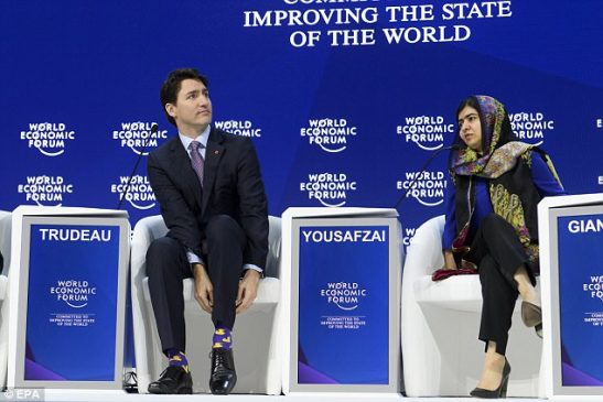 وارتدى ترودو زوجًا من الجوارب منقوشًا عليها رسم للبط باللون الأصفر، أثناء حديثه مع الباكستانية مالالا يوسفزاي، الحائزة على نوبل للسلام.