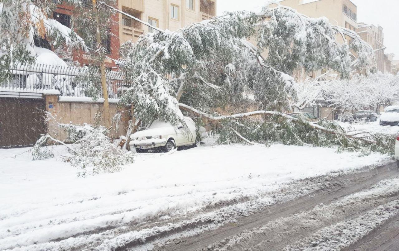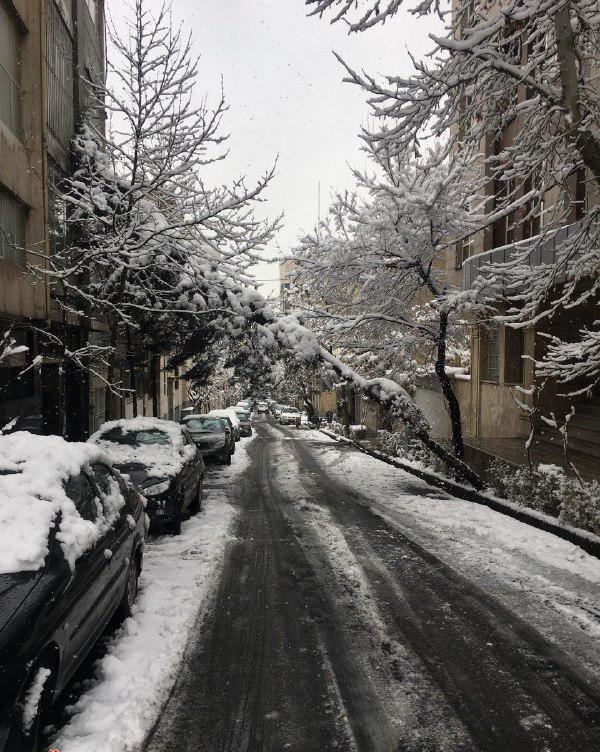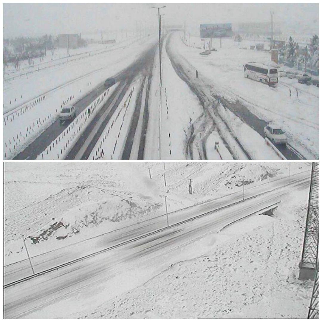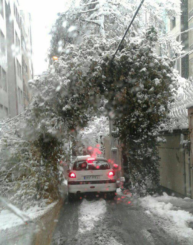 ايران-الكوثر: سقوط ثلوج كثيفة أدى لتغطية شوارع طهران ببياض الثلج و توقف الرحلات الجوية وسقوط أشجار وسط الطريق مما تسبب في بطء بالحركة المرورية.