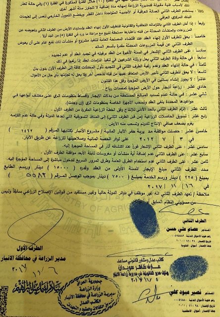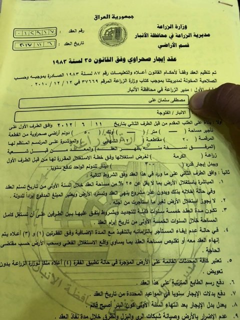وقالت نصيف في بيان، إن "ابن وزير التخطيط والتجارة وكالة (وهو طفل قاصر) وشقيق الوزير وإبن شقيقه استأجروا قطع أراض صحراوية من مديرية زراعة الأنبار / قسم الأراضي، وهذه حالة تثير الاستغراب، فما الذي جعل العائلة تقدم على هذا الشيء؟ وهل يحق لطفل لا يتعدى عمره 11 سنة أن يتعاقد على استئجار أرض؟ ".