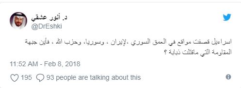 وكان أنور عشقي الذي يلقبه البعض بـ”بالمندوب السعودي في "إسرائيل" بسبب دعواته الصريحة والمتكررة للتطبيع العلني مع "إسرائيل"، قد تفاخر قبل يومين بقصف الاحتلال للعمق السوري دون أي رد من المقاومة.