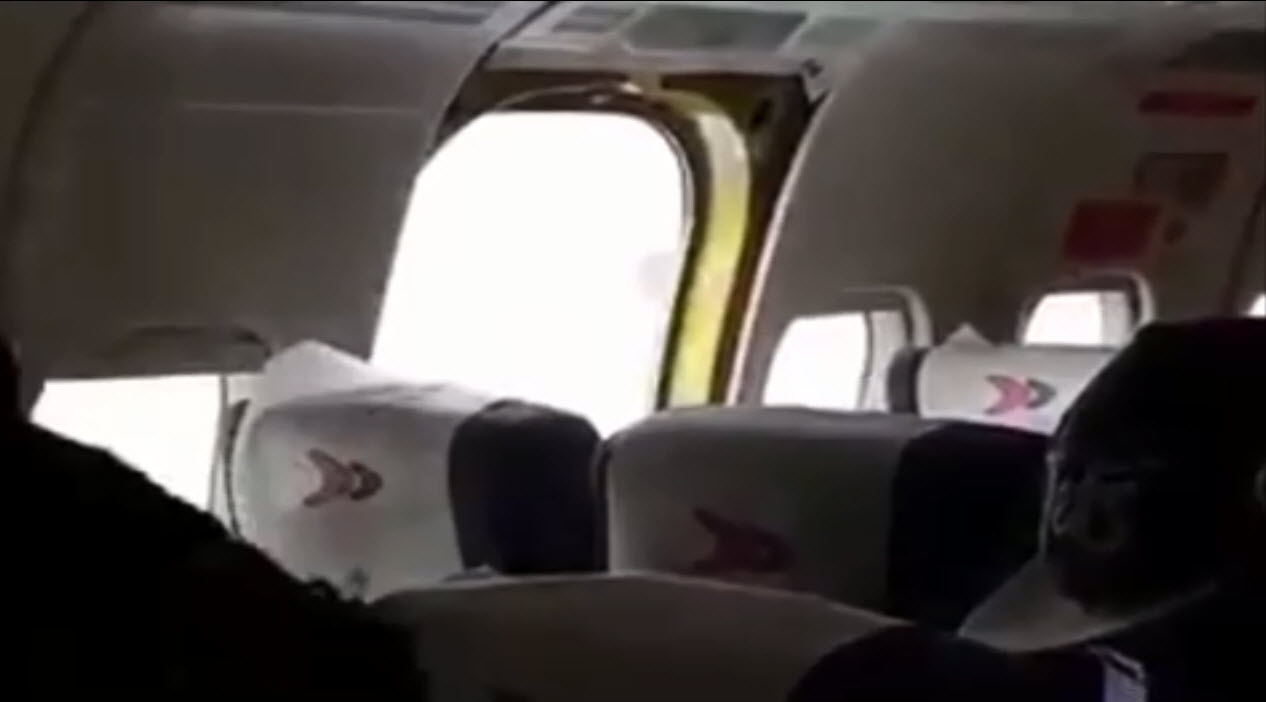 وأضافت أن الباب سقط داخل الطائرة فجأة، محدثا صوتا قويا.