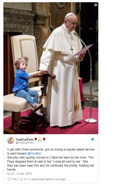 ولاحظ البابا ما حدث فطلب من الرجل أن يجلبها إلى جانبه، حيث أجلسها على كرسي وواصل التلاوة ممسكا بيدها.