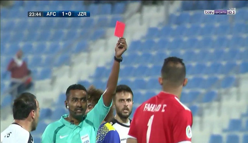 وقام حكم المباراة بطرد حارسي مرمى الفريقين خلال أقل من 7 دقائق، حيث قام بطرد حارس مرمى الجزيرة عبد الله الزعبي بالدقيقة {10} عندما أعاق مهاجم الوحدة أحمد حمادي، ونجح اللاعب حمادي في ترجمة ضربة الجزاء بنجاح في شباك الحارس البديل وليد عيسى.